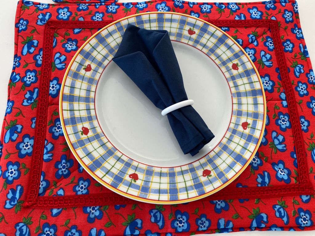Com uma família bem grande, resolvi costurar alguns jogos americanos para organizar melhor os jantares. Fiz todos impermeáveis, com a intenção de facilitar na limpeza.